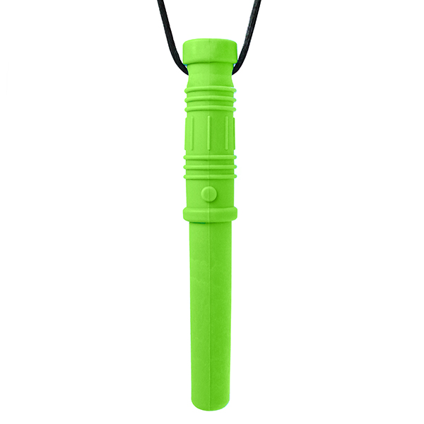 O mordedor em colar ARK's Bite Saber® é uma solução segura e divertida para quem precisa morder. Com cerca de 10 cm de comprimento e pouco mais de 1 cm de diâmetro, tem o tamanho certo para alcançar os molares posteriores, onde a mastigação é mais necessária. Use-o para fornecer estímulos proprioceptivos calmantes para a mandíbula e / ou para fornecer uma alternativa segura para mastigar dedos, golas de camisa, mangas, lápis, etc. O Bite Saber® possui uma pega texturizada e a extremidade oposta lisa, e vem em um cordão de colar ajustável separável.