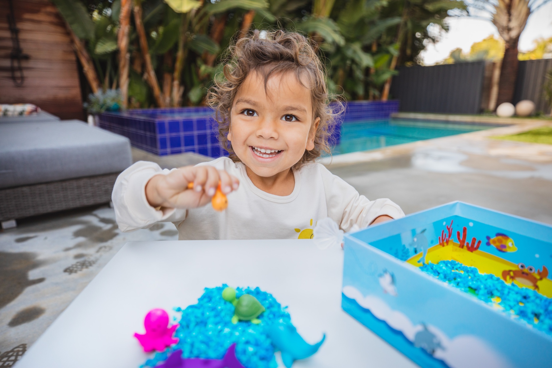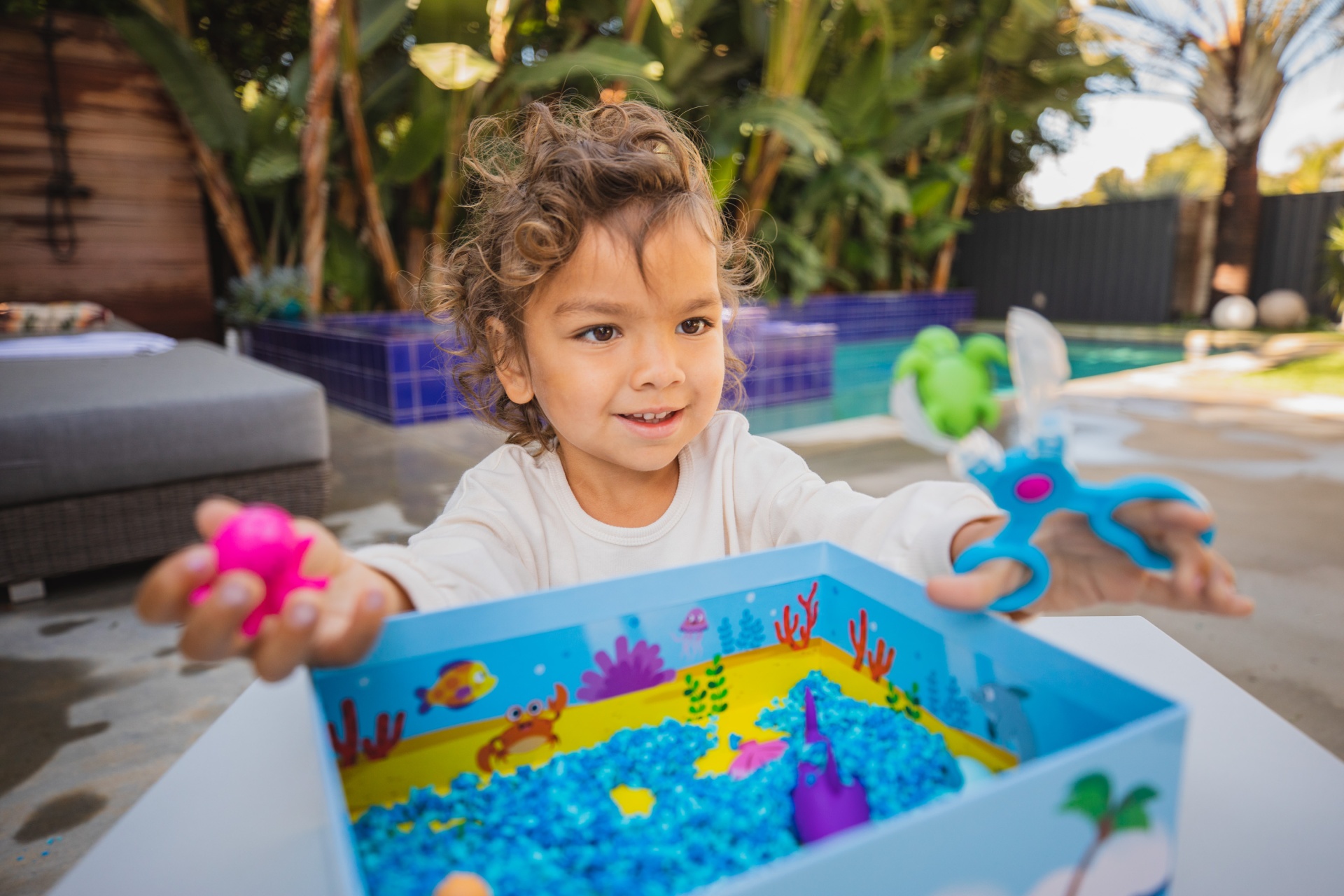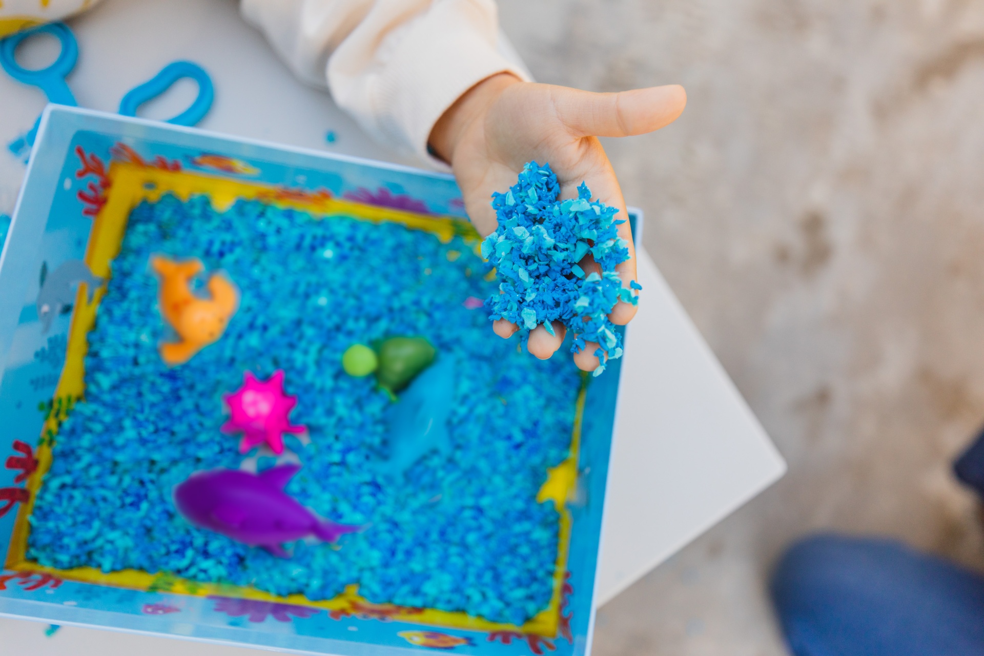 Mergulhe na diversão sensorial com este conjunto sensorial Playfoam Pluffle™ perfeito para brincadeiras sensoriais em ambientes interiores ou em espaços pequenos. Vem com 2 cores do premiado Playfoam Pluffle (granulado com alguma capacidade moldável), colheres tipo tesoura, um prático rolo, copo de recolha e 5 animais marinhos. À medida que as crianças pegam, peneiram, despejam, espremem e brincam com o Playfoam Pluffle, desenvolvem as capacidades motoras finas através de brincadeiras divertidas. O Playfoam Pluffle nunca seca, por isso a diversão sensorial nunca acaba!