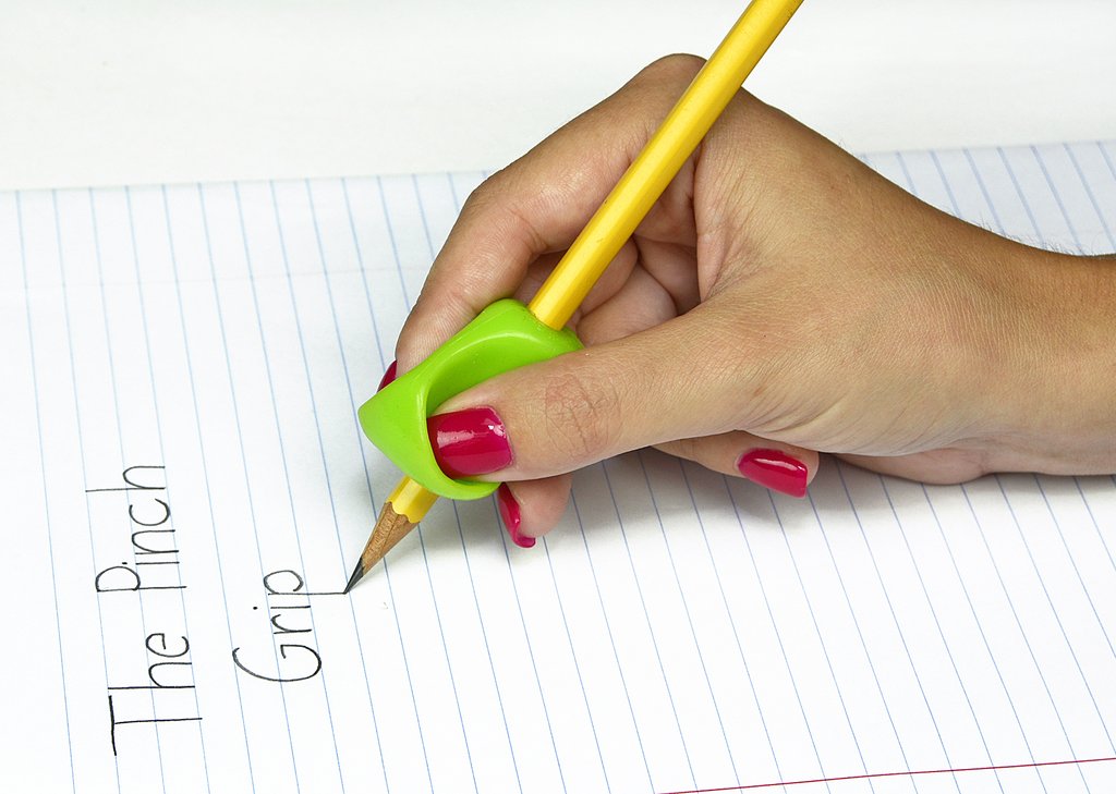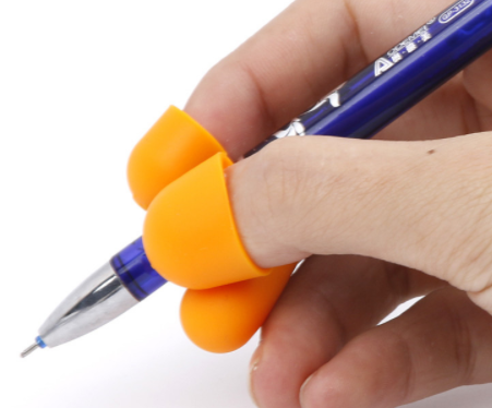 Conjunto de 12 adaptadores ou pegas para lápis ou caneta.